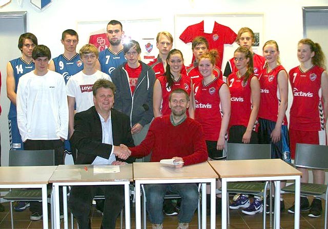 Benedikt Sigurðsson sviðsstjóri samskiptasviðs hjá Actavis og Samúel Guðmundsson formaður Körfuknattleiksdeildar Hauka skrifuðu undir samninginn. Við það tækifæri kom m.a. fram að samningurinn er gríðarlega mikilvægur fyrir körfuna í Haukum og hornsteinn í uppbyggingarstarfi deildarinnar.