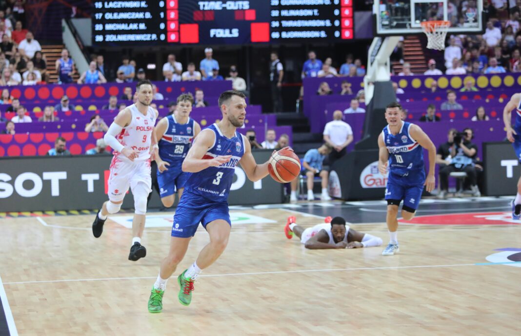 Mynd fyrir ofan: Ægir í leiknum gegn Póllandi og angistar svip má sjá á Jordan kallinum sem var augljóslega að hvíla sig eftir rimmu við Ægi.