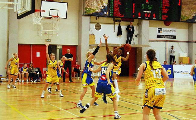 Hjá Grindavík var Crystal Smith og Petrúnella Skúladóttir með 12 stig hvor. Síðan verður að hrósa Berglindi Önnu Magnúsdóttur fyrir frábæra baráttu í Grindavíkurliðinu en hún var komin með 5 stig, 5 stoðsendingar, 5 fráköst og 3 stolna í hálfleik. Ingibjörg Yrsa Ellertsdóttir var einnig öflug með 3 stoðsendingar og 3 stolna bolta.
