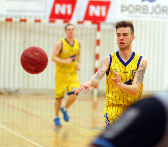 Mynd/ Kjartan Helgi Steinþórsson gerði 7 stig fyrir Grindavík í gær en hann er nýkominn til baka í Röstina frá Bandaríkjunum.