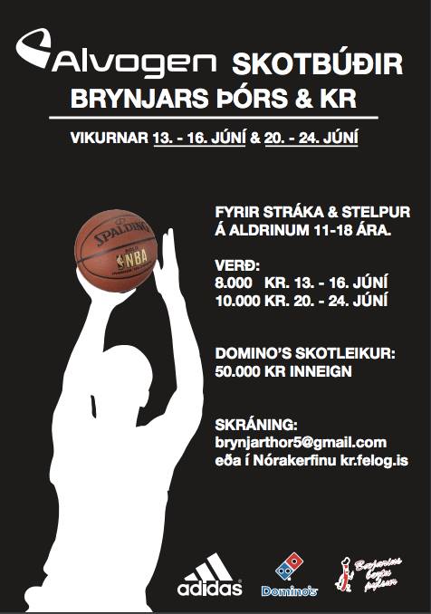 Alvogen – Skotbúðir Brynjars Þórs og KR munu fara fram vikurnar 13. – 16. júní og 20. – 24. júní og verða fyrir stráka og stelpur á aldrinum 11 – 18 ára. Farið verður yfir öll helstu grunnatriði er kemur að því hvað þarf til þess að vera góður skotmaður.