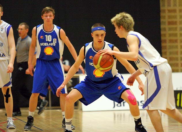 Finnarnir voru sterkir á blokkinni og skoruðu auðveldar körfur þar en þær eru nokkuð stærri en íslensku strákarnir. Finnarnir komust yfir með tveimur þristum og staðan orðin 24-28. Ingi Þór, þjálfari liðsins, tók leikhlé og fór yfir málin með sínum mönnum en svæðið var að klikka á þessum tímapunkti. Svíarnir náðu öðru góðu áhlaupi og voru komnir í 30-37. En þá kom frábær kafli hjá Íslandi en þeir jöfnuðu og komust yfir 39-37 með hraðaupphlaupskörfu frá Degi Kár Jónssyni. Kaflinn hjá Íslandi var ekki búinn en þeir lokuðu fyrri hálfleik með því að fara úr 30-37 í 49-41. Maciej Baginski var kominn með þrjár villur í hálfleik en aðrir voru ekki í villuvandræðum.