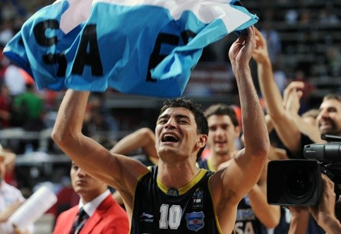 Ljósmynd/ Carlos Delfino leikmaður Argentínu fagnaði 5. sætinu vel og innilega.