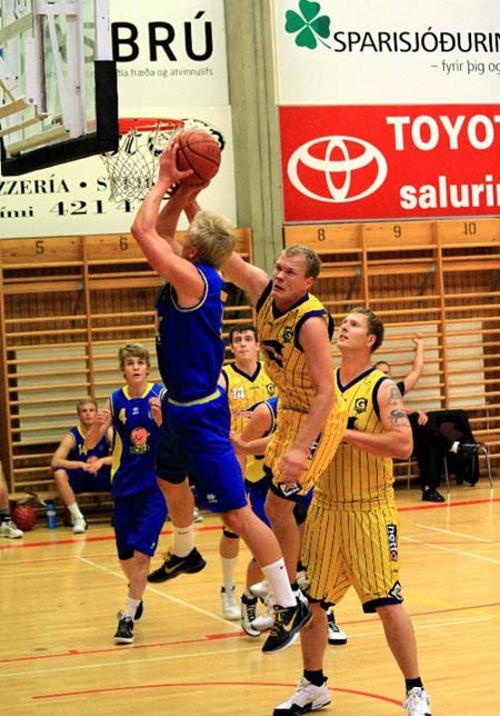 Mynd/ Karl West: Morten er hér í baráttunni undir körfunni á bak við Björn Steinar liðsfélaga sinn.