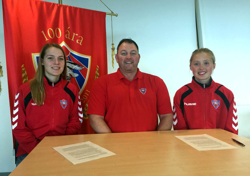 Hér má sjá þær ásamt Ara Gunnarssyni þjálfara Vals við undirritun samninga í dag.