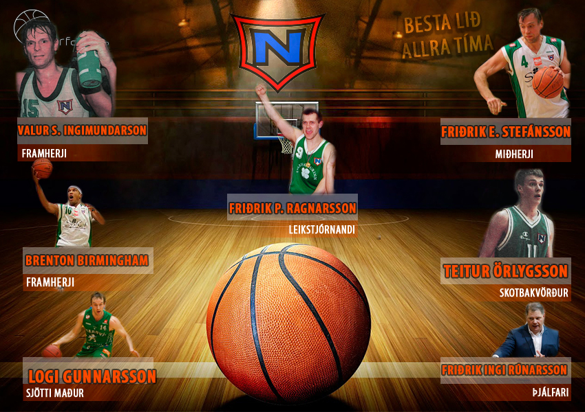 Við höldum áfram að birta sterkustu 5 manna uppstillingu liðana í Dominosdeildinni og að þessu sinni er komið að Njarðvíkingum.  Þrátt fyrir mögur ár nú á nýrri öld voru Njarðvíkingar nánast í áskrift þar á undan að titlum.  Félagið halaði inn titlum og troðfullir bikarskápar Ljónagryfjunnar endurspegla það.  Álitsgjafar hafa hingað til verið nokkuð afdráttarlausir í skoðun sinni en þeir Njarðvíkingar sem við höfðum samband við áttu í mesta basli með að raða saman fimm bestu og báðu endurtekið um að bæta við öðru fimm manna liði. En þetta hafðist að lokum og hér koma þeir sem álitsgjafar töldu vera bestu fimm.