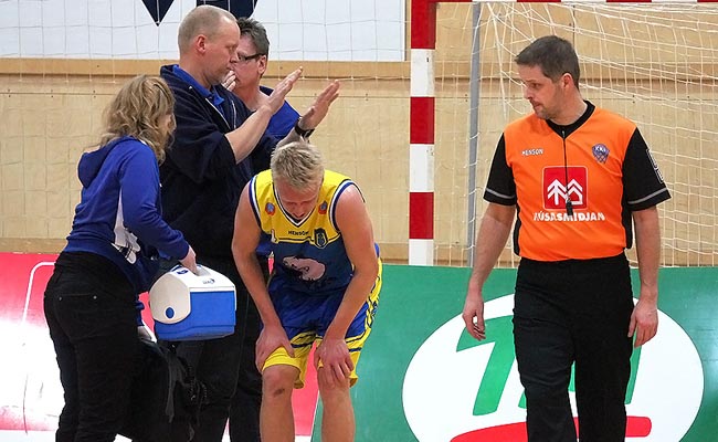 Fjölnismaðurinn Jón Sverrisson kom lítið við sögu í leik Stjörnunnar og Fjölnis í kvöld en hann meiddist snemma og lék ekkert meira með. Í fyrstu var óttast að hann hefði slitið krossbönd eða annað slíkt af slæmum toga.