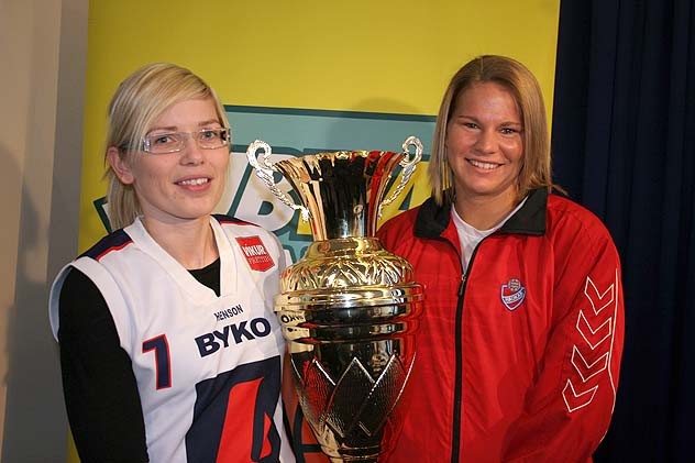 Ljósmynd/Marín Rós Karlsdóttir og Heather Ezell með bikarinn eftirsótta á kynningarfundi bikarúrslitanna síðasta fimmtudag.