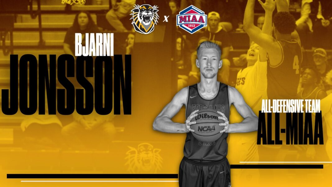Bjarni Guðmann Jónsson leikmaður Fort Hays State Tigers var valinn í varnarúrval deildar sinnar í bandaríska háskólaboltanum. Liði hans gekk einkar vel á tímabilinu, þar sem þeir unnu 22 leiki og töpuðu aðeins 5, en nú að lokinni deildarkeppni halda þeir næst í MIAA úrslitamótið þar sem þeir mæta Missouri Southern í fyrsta leik á morgun föstudag 4. mars.