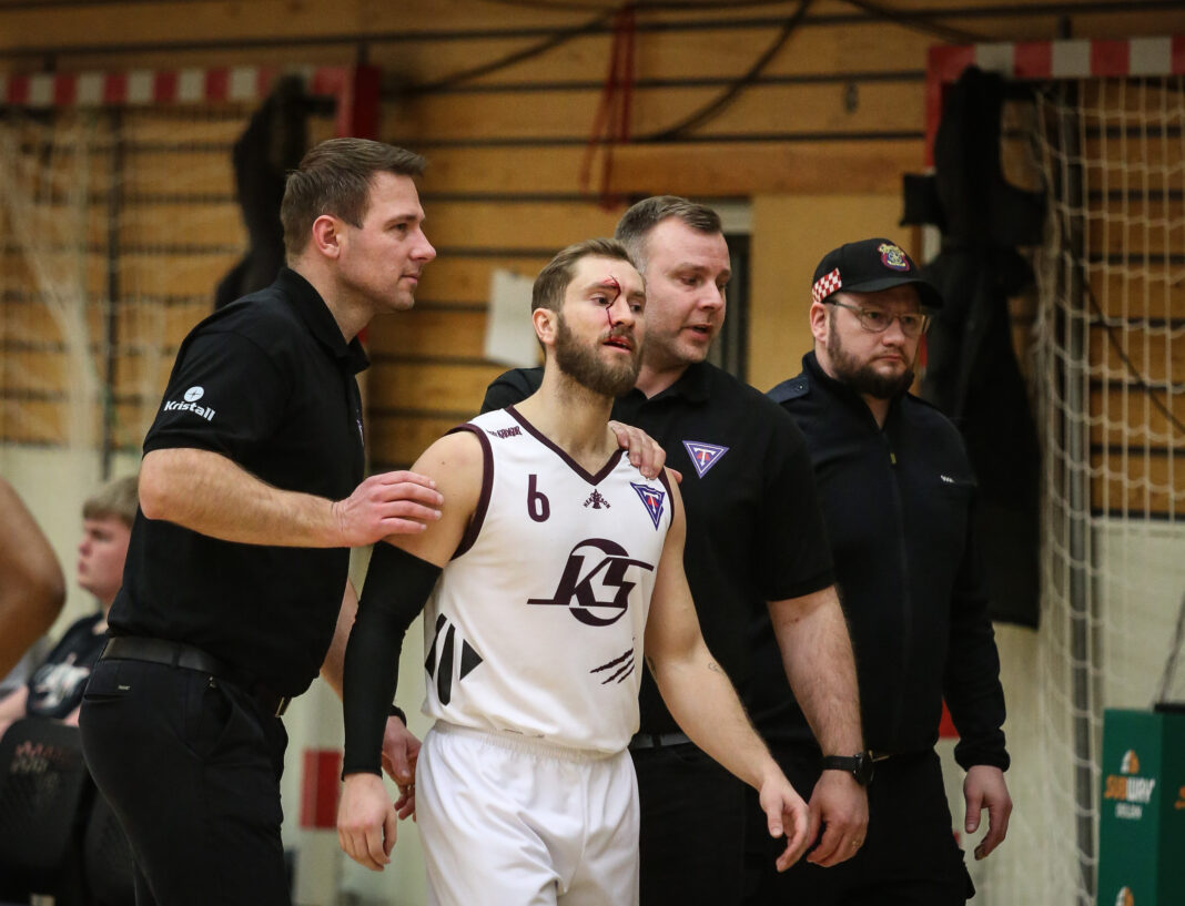 Sama baráttan hélt áfram í öðrum leikhluta þó gestirnir væri alltaf hænufeti á undan. Lautier tryggði þeim forystu í hálfleik með góðum þrist 30-31. Arnar hafði farið á sjúkrahús til að láta gera að sárum sínum og kom aftur myndarlega vafinn um höfuðið en greinilega ekki í fullu formi.