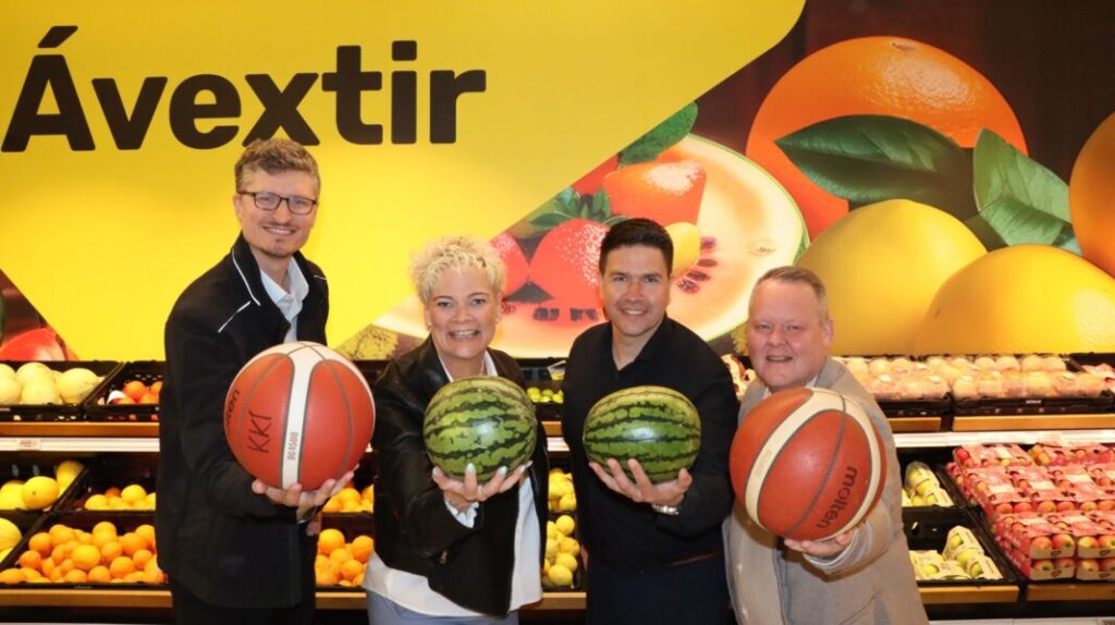 Á meðfylgjandi mynd frá vinstri eru þau; Baldur Ólafsson markaðsstjóri Bónus, Guðbjörg Norðfjörð Elíasdóttir formaður KKÍ, Björgvin Víkingsson framkvæmdastjóri Bónus og Hannes S. Jónsson framkvæmdastjóri KKÍ.