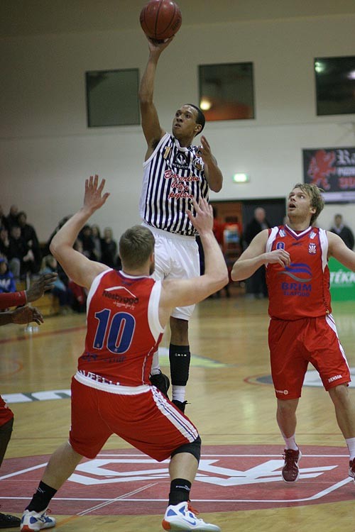Marquis Hall átti góða kafla hjá Snæfell í kvöld og minnkaði muninn í 68-64 með þriggja stiga körfu og voru það hans fyrstu stig í síðari hálfleik. KR náði snemma tíu stiga forskoti en Hólmarar létu ekki stinga sig af, Ferguson fór af velli í liði KR með fimm villur en þrátt fyrir hans fjarveru var KR ávallt við stjórnartaumana.