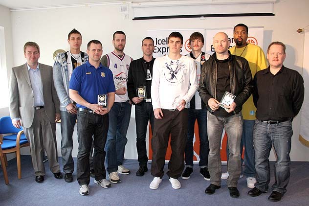 Ljósmynd/ Úrvalsliðið ásamt Matthíasi Imsland forstjóra Iceland Express lengst til vinstri og lengst til hægri er Hannes S. Jónsson formaður KKÍ.
