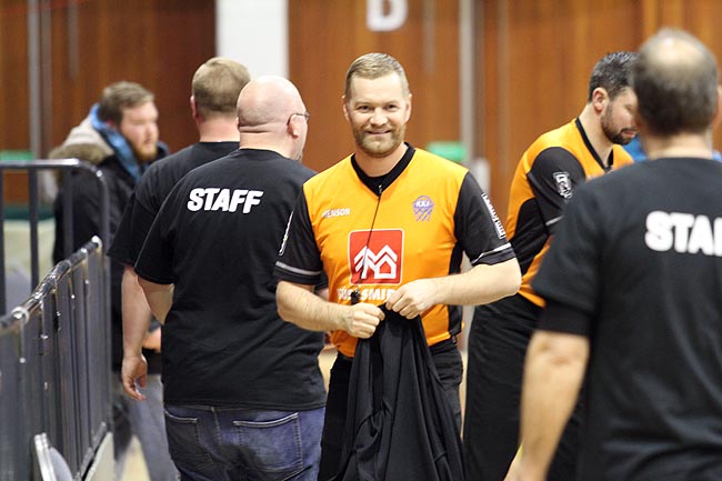 Bikarfjörið er hafið í Höllinni því nú var að rúlla af stað viðureign Keflavíkur og Ármanns/Hrunamanna í 10. flokki kvenna. Steinar Orri Sigurðsson er annar tveggja dómara leiksins en kappinn á afmæli í dag og vílar það ekki fyrir sér á þessum hátíðisdegi að grípa í flautuna.