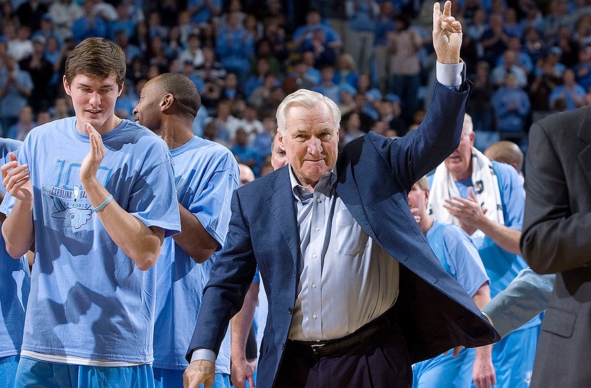 Kannski ekki allir sem þekkja nafnið Dean Smith en þó flestir sem eitthvað þekkja til körfuknattleiks vestra hafs. En í gær lést þessi fyrrum þjálfari North Carolina háskólans, 83 ára að aldri. Dean Smith var að mörgum talinn hafa verið langt á undan sinni samtíð í þjálfun og samband hans við leikmenn sína var einstakt. Dean var naskur að finna góða hæfileika fyrir skólann og má þar nefna Antawn Jamison, Vince Carter, Rasheed Wallace, James Worthy, Sam Perkins og svo auðvitað þann allra besta Michael Jordan. En þessi listi er svo sannarlega ekki tæmandi. Dean Smith var við stjórnvölin hjá UNC í 36 ár og hætti þar árið 1997 með 879 sigra á bakinu sem var á þeim tíma met. Hann vann tvisvar NCAA titilinn og 11 sinnum fór hann í Final Four með sitt lið.