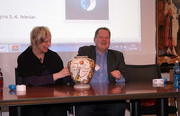 Formaðurinn Hannes og varaformaðurinn Guðbjörg skemmtu sér konunglega við bikardráttinn í dag.