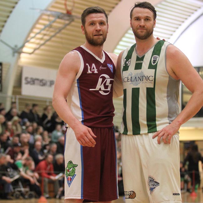Það gerist ekki á hverjum degi að íslenskir teigstríðsmenn taki sig til í miðjum bardaga, slái upp í óaðfinnanlega pósu og það jafnvel kátir í bragði en það gerðu þeir andstæðingarnir Helgi Rafn Viggósson leikmaður Tindastóls og Grétar Ingi Erlendsson leikmaður Þórs í gærkvöldi.