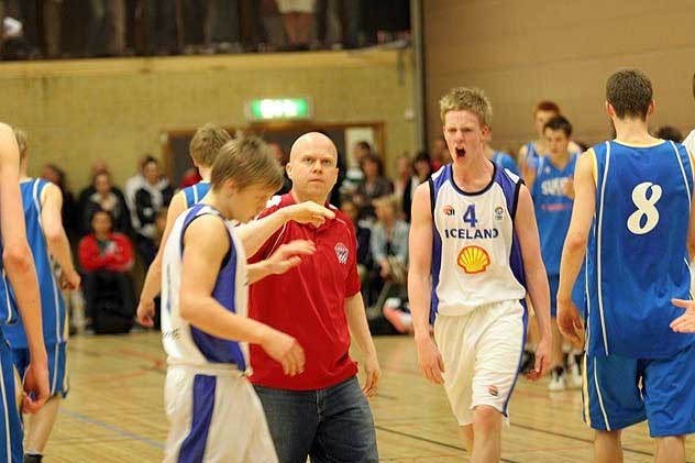 Mynd/ Einar Árni að störfum með yngri landsliðum Íslands, í bakgrunni má sjá Stefán Karel Torfason leikmann Snæfells í ham.