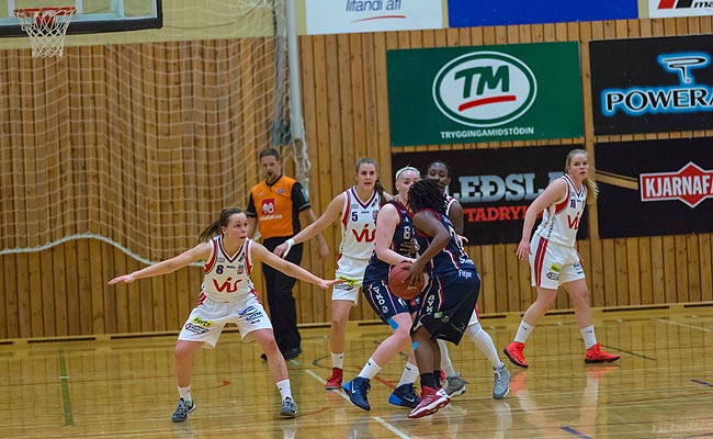 Bryndís Guðmundsdóttir gaf sér smá tíma í innlit á skrifstofu Karfan.is í Hólminum rétt fyrir brottför heim og sagði að leikurinn hefði auðveldlega getað dottið báðum megin. “Við náðum góðri byrjun en þær ná einhvernveginn alltaf að skora á okkur og við náum ekki alveg að stoppa þær þegar líða fer á fyrri hálfleikinn og jafnt í hálfleik. Þetta var baráttuleikur algjörlega 50:50 og þær fengu alltof mörg tækifæri í sóknum sínum og tóku nánast 2 fráköst í hverri sókn og það er eitthvað sem við þurfum að laga og það hefur verið veikleiki okkar að stíga út.”