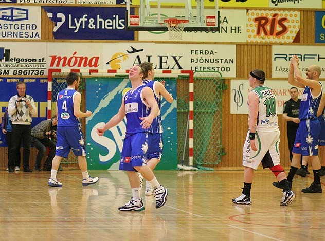 Varðandi rimmu Guðmundar Jónssonar og Justin Shouse í kvöld skal það sagt að Justin fékk óneitanlega drottningarmeðferð hjá dómurum leiksins og Guðmundur fékk dæmdar á sig villur fyrir afar litlar sakir ef einhverjar voru. Hitt er svo að þegar um 10 sekúndur voru til leiksloka átti Guðmundur að fá sína fimmtu villu þegar hann kýldi Shouse í gólfið en það flokkaðist víst ekki sem leikbrot þó í grófari kantinum hefði verið.