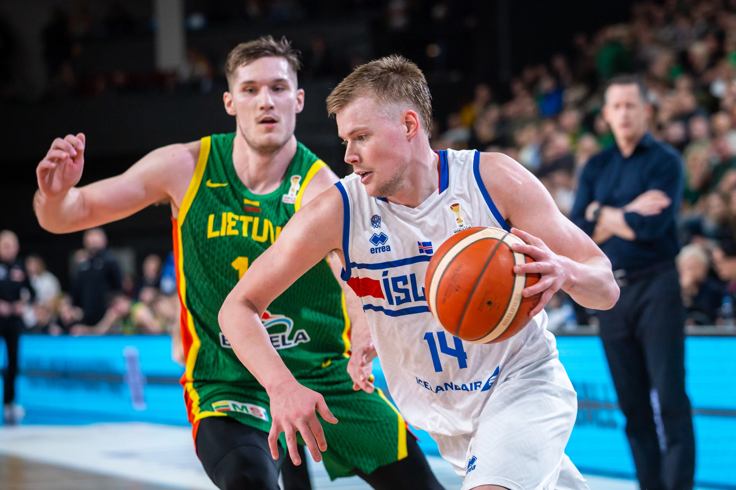 Litháen leiðir gegn Íslandi í Svyturio Arena í Klaipeda í fjórða leik liðanna í undankeppni HM 2027, 52-33.