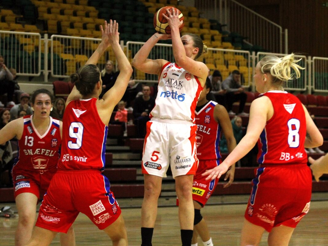 Annað var uppi á teningunum hjá úrvalsdeildarliðinu sem er jú eitt af toppliðunum í efstu deild þar komu 10 leikmenn við sögu og allir náðu að skora. Stigahæst í liði Snæfells var fyrrum leikmaður Þórs, Heiða Hlín Björnsdóttir en hún skoraði 22 stig þá voru þær Anna Soffía og Tinna með 21 stig hvor.