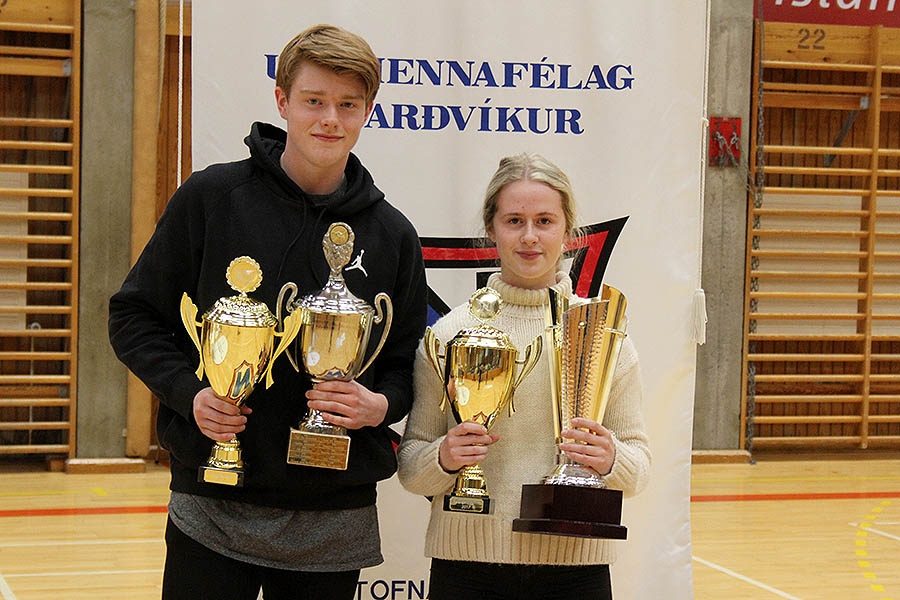 Lokahóf yngri flokka í Njarðvík fór fram í gær þar sem Snjólfur Marel Stefánsson hlaut Elfarsbikarinn og Erna Freydís Traustadóttir hlaut Áslaugarbikarinn.