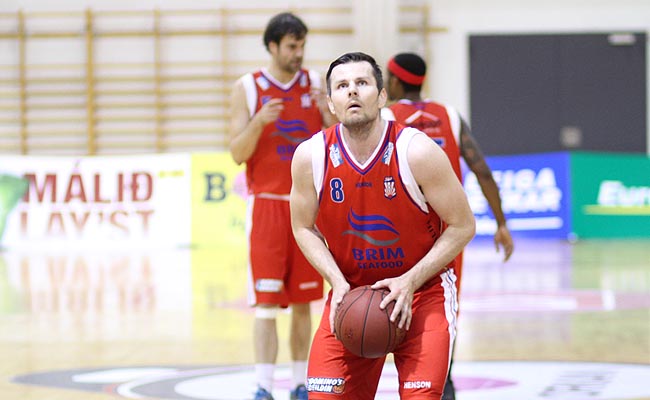 Pálmi Freyr Sigurgeirsson var mættur í búning í gærkvöldi þegar Snæfell tók á móti Hamri í Lengjubikar karla í Stykkishólmi. Sigur Hólmara var í lítilli hættu og lék Pálmi í rúmar 12 mínútur í leiknum. Á dögunum fékk Pálmi högg á bakið og hefur misst af síðustu leikjum sökum þessa.