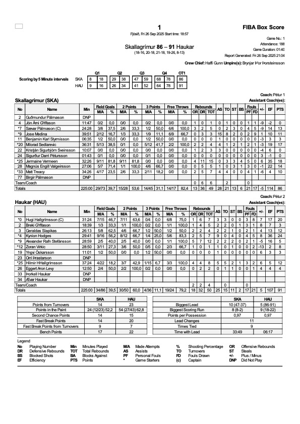 Fyrir Hauka var stigahæstur Kynion Hodges með 24 stig og Hugi Hallgrímsson bætti við 20 stigum.