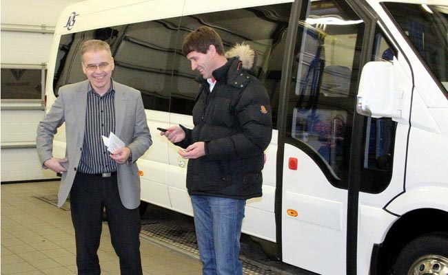 Við hátíðlega athöfn í Kjarnanum á Gamlársdag afhenti Jón Eðvald Friðriksson framkvæmdastjóri FISK Seafood, Ungmennafélaginu Tindastóli, nýja 17 farþega rútu að gjöf. Það var Gunnar Þór Gestsson sem tók við gjöfinni fyrir hönd félagsins. www.tindastoll.is greinir frá.