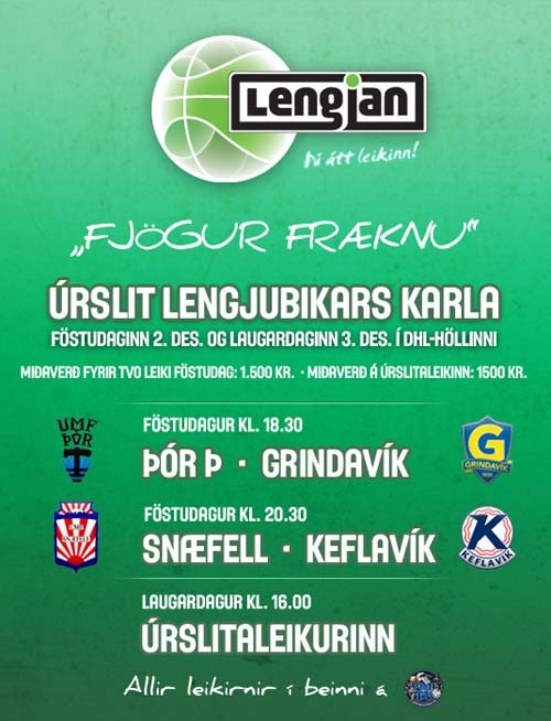 Undanúrslitin í Lengjubikar karla, ,,fjögur fræknu,“ fara fram í DHL-Höllinni í vesturbænum í kvöld. Fyrri leikur kvöldsins hefst kl. 18:30 en þá mætast Þór Þorlákshöfn og Grindavík og í seinni leiknum sem hefst kl. 20:30 mætast Snæfell og Keflavík.