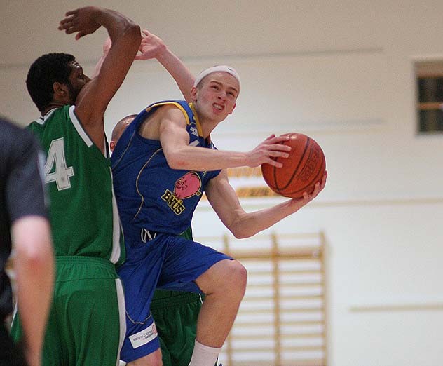 Garðar Sveinbjörnsson var baráttuglaður í Fjölnisliðinu í kvöld og var fremsti maður þeirra með vænghafið sitt í svæðisvörninni. Á sóknarendanum var Tómas Tómasson skæður í liði gestanna en hann jók einmitt muninn í 61-77 með góðu gegnumbroti.