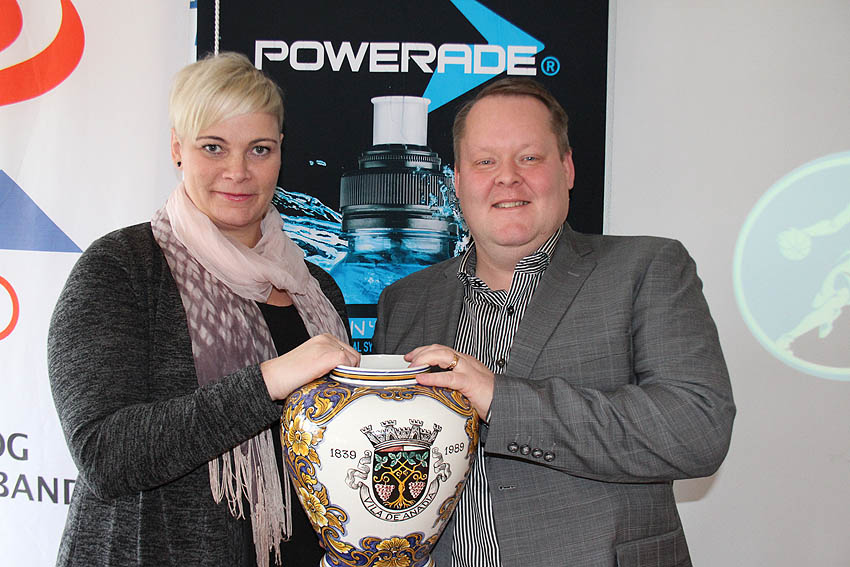 Mynd/ [email protected] – Það voru varaformaðurinn Guðbjörg Norðfjörð og formaðurinn Hannes S. Jónsson sem sáu um bikardráttinn úr skálinni fornfrægu í dag.