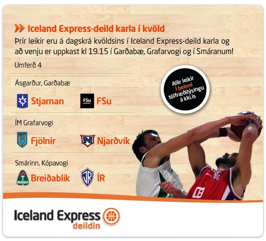 Í kvöld hefst fjórða umferðin í Iceland Express deild karla með þremur leikjum sem allir hefjast kl. 19:15. Stjarnan og Njarðvík geta styrkt stöðu sína á toppi deildarinnar með sigrum í kvöld en þessi tvö lið ásamt KR eru einu ósigruðu lið deildarinnar. KR mætir síðan Grindavík á morgun í stórleik umferðarinnar í DHL-Höllinni.