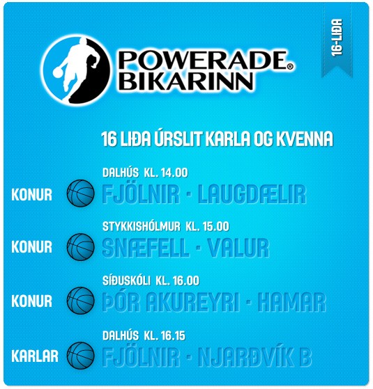 Í dag fara fram fjórir leikir í Poweradebikarkeppni karla og kvenna. Fyrsti leikurinn er slagur Fjölnis og Laugdæla í kvennakeppninni en leikurinn hefst kl. 14:00 í Dalhúsum í Grafarvogi.