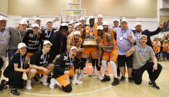 Ratkaisevan kuudennen finaaliottelun jatkoajalla nimiinsä vieneelle Karhu Basketille mitali, ja samalla mestaruus, on seuralle historiansa ensimmäinen!https://t.co/sU4nSyzZJV pic.twitter.com/fCbQTfjQRS