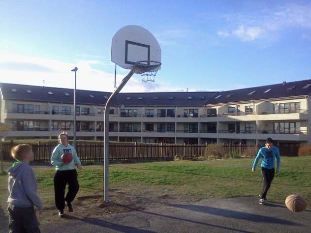 Forsaga málsins er sú að íbúi í hverfinu kvartaði undan hávaða og skömmu síðar var karfan fjarlægð. Ungmenni mótmæltu þessum aðgerðum borgaryfirvalda með því að halda ,,alþjóðlegan drippldag“ á leikvellinum og fengu sínu framgengt eins og sést á meðfylgjandi mynd. Karfan er komin á sinn stað, 305 sm. að hæð, lögleg hæð.