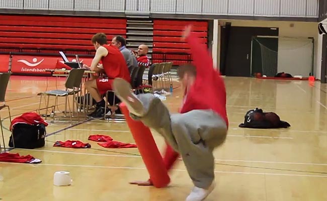 Kannt þú að LeBron-a? Rúnar Ingi Erlingsson leikmaður Vals í Domino´s deild karla átti ekki í neinum vandræðum með að LeBrona í Vodafone-höllinni í kvöld. Þetta var dýrari týpan…ekki manneskja í sjónmáli en bandvefjarúlla sem stóð föst fyrir. Að sjálfsögðu var bandvefjarúllunni vikið umsvifalaust úr húsi. Má vera að þetta sé fyrsta íslenska LeBron-ið en síður en svo fyrsta floppið, óskandi þó að þetta væri það síðasta.