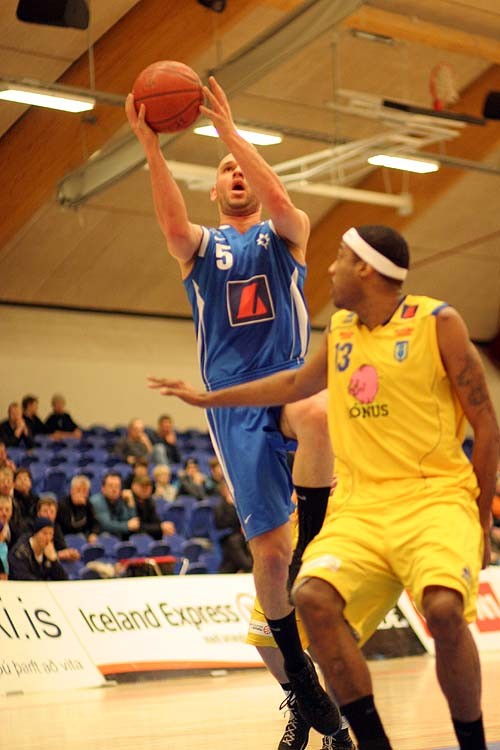 Leikstjórnandinn Ægir Þór Steinarsson fékk það vandasama hlutverk að gæta Justins Shouse og gerði það ágætlega en Justin sá Ægi fyrir miklum önnum og var kominn með 15 stig í hálfleik.
