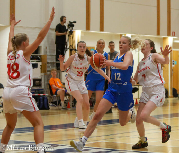 U16 landslið kvenna tók á móti Danmörku í dag. Erfið byrjun setti tóninn fyrir leikinn, og þrátt fyrir að vinna lokaleikhlutann 19-10 töpuðu þær gegn sterkum Dönum. Liðið keppir gegn Eistlandi á morgun í spennandi leik.