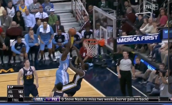 Marvin Williams nagar sig eflaust í handarbakið núna að hafa asnast til að fara á móti þessari troðslu…