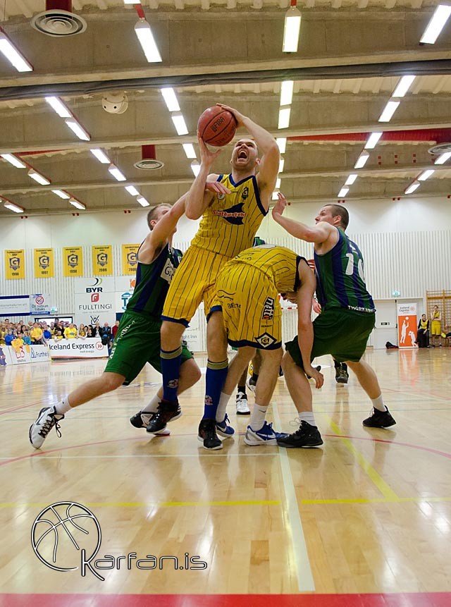 Varnarleikurinn hjá báðum liðum var ekki upp 10 á löngum köflum í þessum leik sem er jú kannski ekkert skrítið þar sem að þessi lið eru búin að spila marga leiki á háu tempói á síðustu vikum. Vörn Þórsara var þó öllu betri, en þeir „mættu“ aftur til leiks í þennan þriðja leik eftir afar slaka frammistöðu í öðrum leiknum þar sem að Grindvíkingar gengu frá þeim. Gestirnir mættu semsagt til leiks líkt og þeir hafa gert í flesta leiki í vetur, „grjótharðir“ og létu finna fyrir sér frá fyrstu mínútu. Grindvíkingar gerðu sig seka um allt of margar klaufavillur þar sem að þeir voru að brjóta á Þórsurum í þriggja stiga skoti og einnig þar sem að Þórsarar skoruðu körfur og fengu víti að auki. Þórsarar voru hins vegar alltaf skrefi á undan í varnarleiknum og fengu sínar villur í bullandi baráttu með Darra Hilmarsson fremstan í flokki gargandi sína menn áfram. Fagmaður þar á ferð. En eins og áður sagði þá var varnarleikur beggja liða ekki upp á marga fiska þar sem að leikar enduðu 91-98. Þetta er mjög hátt stigaskor þar sem að við erum að tala um „úrslitaleik,“ allur veturinn undir, og Íslandsmeistarabikarinn skínandi fínn á hliðarlínunni.