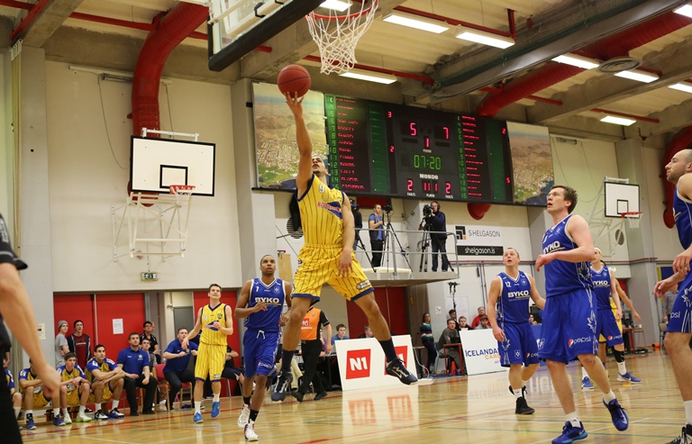 Justin Shouse gangsetti úrslitin með gegnumbroti fyrir Stjörnuna og gestirnir úr Garðabæ fóru allt annað en hljóðlega af stað því þeir skoruðu fyrstu sjö stig leiksins. Grindvíkingum var ekki til setunnar boðið, Jóhann Árni opnaði fyrir heimamenn með þrist og við tók 17-2 kafli og komust heimamenn í 17-9 þegar Garðbæingar tóku leikhlé! Í þessum kafla var m.a. glæsileg flétta hjá þeim Zeglinski og Sigurði Gunnari í Stjörnuteignum sem lauk með stórustrákatroðslu frá Ísafjarðartröllinu.