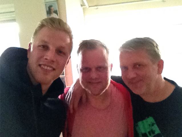 Sigurbjörn og bróðir hans Jón Gauti Dagbjartsson sem er framkvæmdarstjóri KKD. Grindavíkur eru saman á mynd með Hauk þar sem matseðli kvöldsins er lýst ásamt því að vísað er í flugkennslu frá Einari (sem er bróðir þeirra Dagbjartssona) en Haukur Helgi hefur nú þegar byrjað flugnám hjá Flugskóla Keilis.