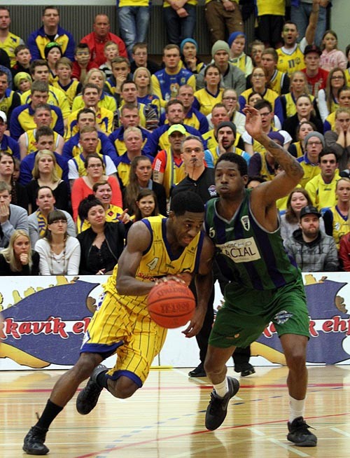 Deildarmeistarar Grindavíkur tóku í kvöld 1-0 forystu gegn Þór Þorlákshöfn í úrslitarimmu liðanna um Íslandsmeistaratitilinn. Þessi fyrsti leikur liðanna bauð upp á allan pakkann, glæsileg tilþrif, hraða og fyrst og fremst mikla spennu. Fullkomið veganesti inn í framhaldið. Lokatölur í Röstinni voru 93-89 Grindavík í vil þar sem Þór barði sig upp að hlið heimamanna eftir að hafa misst þá framúr sér en Grindvíkingar voru ólseigir á lokasprettinum og lönduðu sigri. J´Nathan Bullock gerði 29 stig og tók 9 fráköst fyrir gula í kvöld en hjá Þór voru þeir Blagoj Janev og Darrin Govens báðir með 17 stig.