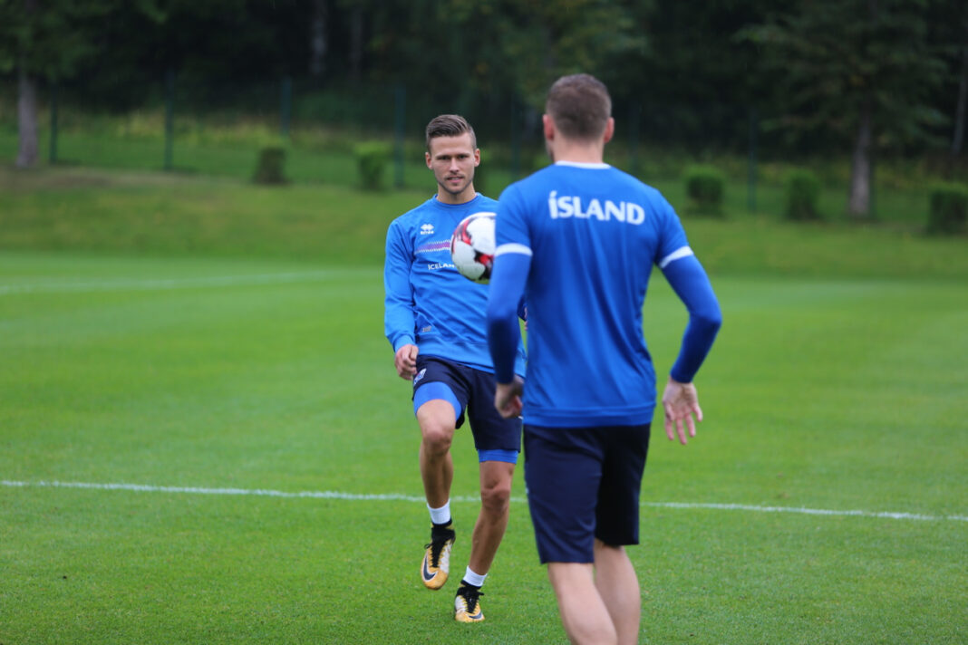 Njarðvíkingurinn Arnór Ingvi Traustason var í morgun hress á æfingu landsliðsins í fótbolta hér í Helsinki. Arnór sem æfði alla sína yngriflokka með Njarðvíkingum var ekki aðeins efnilegur á sínum tíma heldur nokkuð sleipur á körfuknattleiksvellinum og margir vonsviknir að hann hafi svo valið fótboltann. Þeir sömu eru kannski ekki jafn vonsviknir í dag þar sem að kappinn er að ná hæstu hæðum þar á bæ.