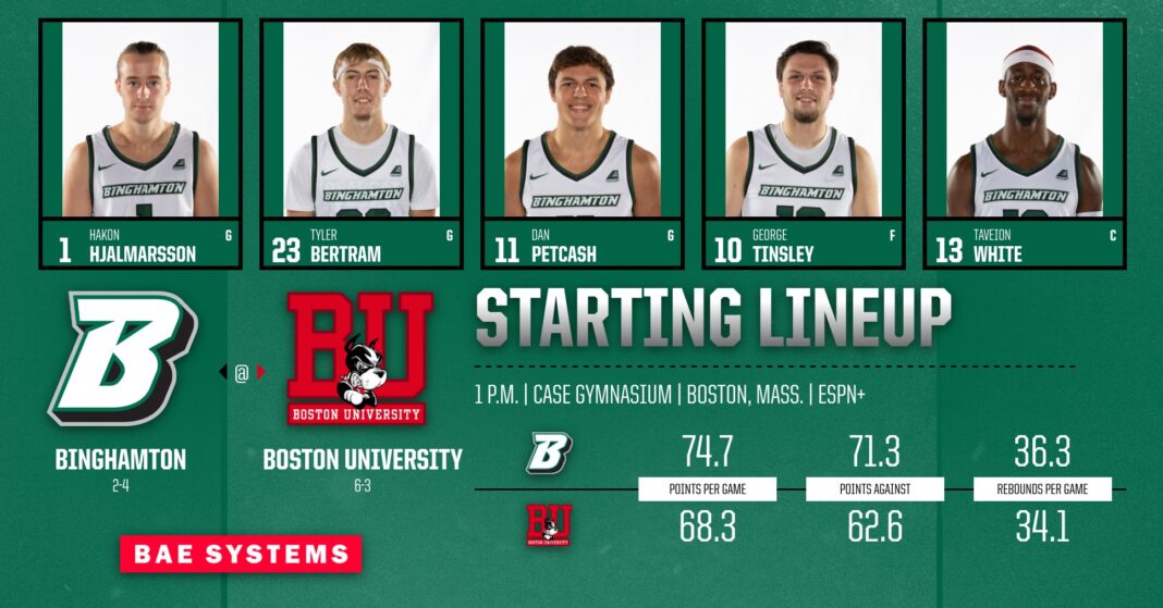 Hákon Örn Hjálmarsson og Binghamton Bearcats töpuðu í gærkvöldi fyrir Boston University Terriers í bandaríska háskólaboltanum, 63-68.