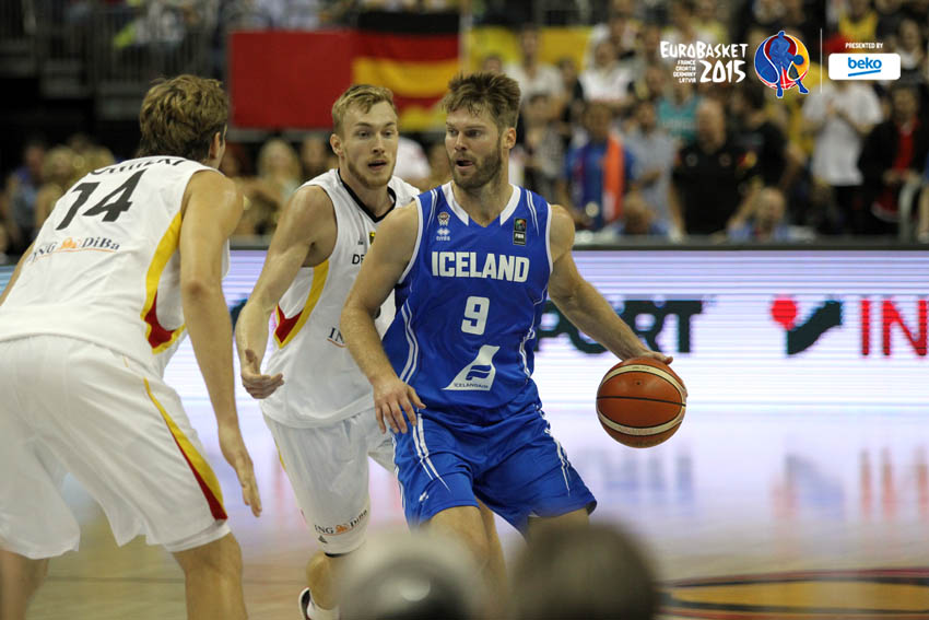 Mynd/ [email protected] – Jón Arnór Stefánsson hefur verið kyngimagnaður í íslenska liðinu í fyrri hálfleik og óhætt að segja að hann sé að valda usla í herbúðum Þjóðverja.