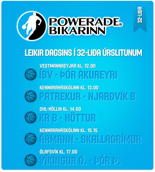 Fjórir leikir fóru fram í 32 liða úrslitum Poweradebikarsins í gær þar sem Hamar, Stjarnan, KFÍ og Breiðablik tryggðu sér farseðilinn inn í 16 liða úrslitin. Í dag eru fimm leikir á dagskránni í 32 liða úrslitum og á morgun klárast svo 32 liða úrslitin og þá verður ljóst hvaða 16 lið komast áfram og verða í pottinum næst þegar er dregið.