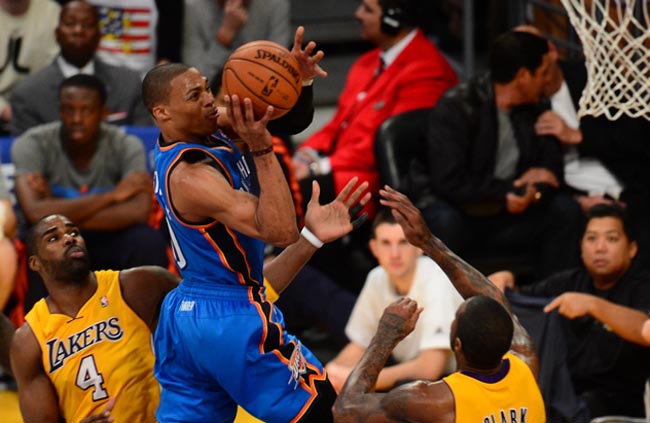 Oklahoma City Tunder lenti enn og aftur í vandræðum gegn Memphis en knúði fram sigur í oddaleik í fyrstu umferð og lagði síðan Clippers í sex leikjum í þeirri annarri (reyndar vilja sumir meina að að hafi verið eftir dómaramistök í leik fimm) í skemmtilegri viðureign. Kevin Durant sem var á dögunum valinn mikilvægasti leikmaður NBA keppnistímabilsins hefur verið að spila frábærlega sem og Russell Westbrook. Serge Ibaka hefur einnig verið að spila vel en nýbúið er að tilkynna að hann verði ekki meira með vegna meiðsla. Þetta er svakalegur biti fyrir Thunder en menn muna eflaust enn þegar Westbrook meiddist í fyrra og Thunder tapaði fyrir Memphis. Nú verða aðrir leikmenn að stíga upp eins og Reggie Jackson, Kendrick Perkins og Nick Collison auk nýliðans Steve Adams sem hefur átt sín augnablik í vetur. Meiðsli Ibaka minnka þó líkur á sigri Thunder.
